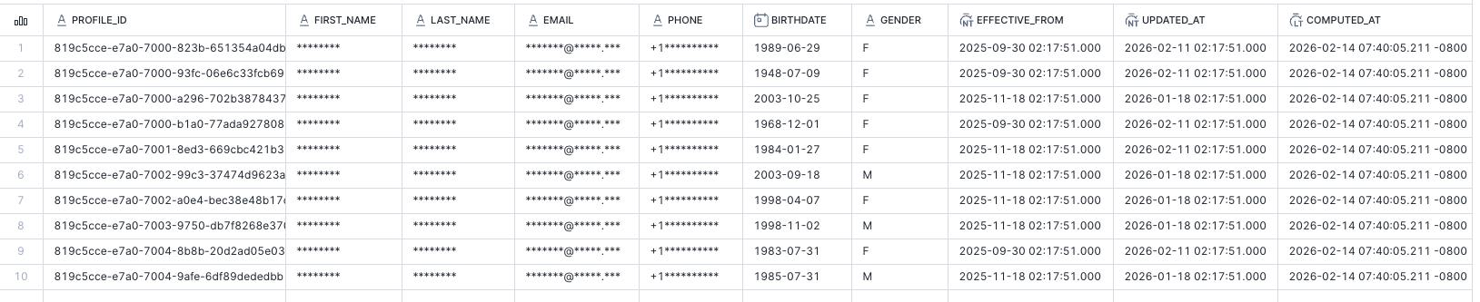 SPAN persists identity, and key dimensions and metrics that sit on top of identity, as stateful first class artifacts in your Snowflake AI Data Cloud. Identity resolution logic is stored and versioned, current identities are resolved and persisted to a Snowflake table, and overrides to the core logic are strictly governed so they can be persisted. For all SPAN artifacts, history and lineage are stored, managed, and readily available via SnowSQL so you have full visibility into your data at all times.