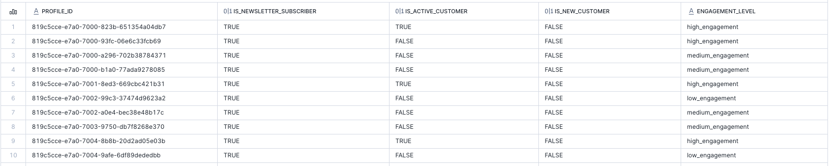 **Segment:** a transformation module that creates customer segment flags and cohorts by evaluating business rules against compiled demographics and metrics. It enables customer segmentation for marketing campaigns, personalization, and business intelligence by defining pre-computed, consistent customer classifications.The user has full control over what segments to include and how they should be calculated.